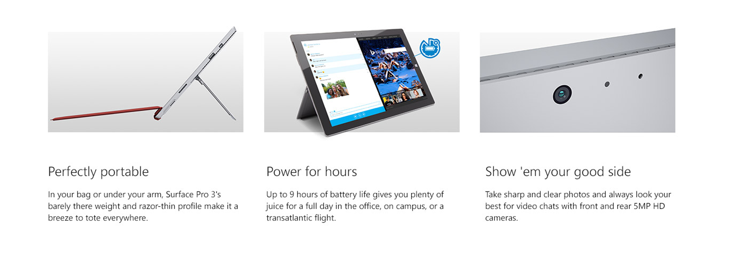 Striving to create a page that would delight customers, we focused on bringing attention to the impressive design and unique traits of Surface Pro 3. The page layout balanced compelling imagery and effective storytelling which highlighted product features and maximized visual impact.