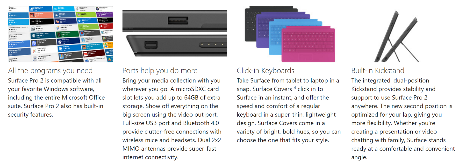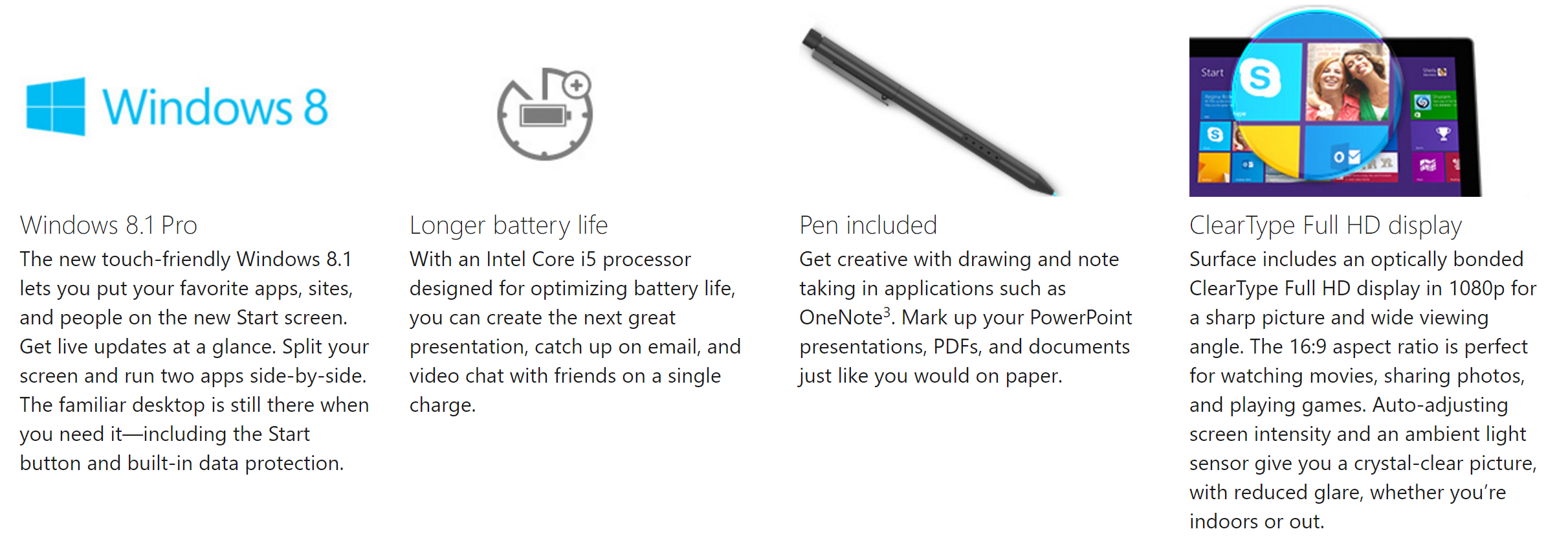 Introduced an entire section dedicated to touting the Surface Pen technology and its benefits.
